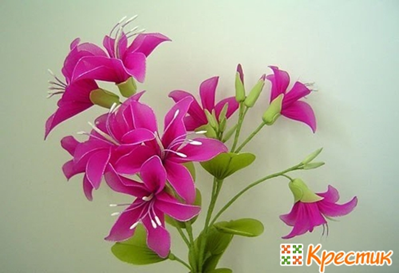 Затем прикрепляем цветочки к ветке и в наших руках оказывается элегантная веточка необычного цветка!