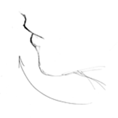 Ну а пока посмотрим, как будут рисоваться губы в три четверти. Здесь ничего сложного нет. Немного включаете воображение, и, губы делают поворот в пространстве...:
